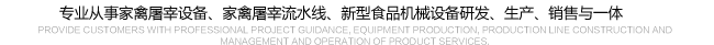 公司主要產品有家禽屠宰流水線、全自動家禽脫毛機、自動家禽浸燙機、多軸脫毛機、各種型號圓筒脫毛機、家禽燙毛鍋、電松香鍋、切塊機、剝胗機、等30余種食品機械設備。規格品種齊全、產品質量穩定可靠,遠銷國內外。